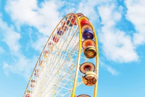 Attraction familiale 0.80m Magique La GRANDE ROUE est véritablement l’attraction emblématique des fêtes foraines. Tantôt bleue et blanche, tantôt multicolore, les roues de Bordeaux offrent une vue unique et exceptionnelle sur le Patrimoine de notre